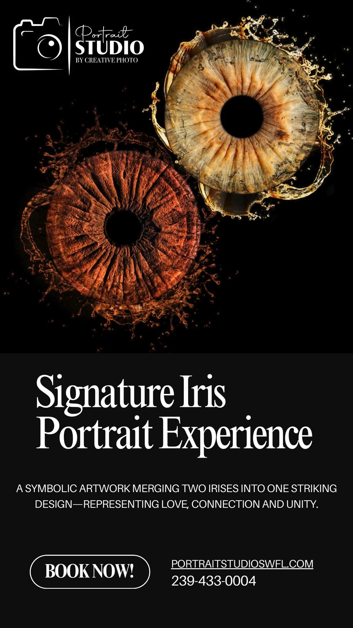 A one-of-a-kind fine art portrait capturing the intricate beauty of your iris in stunning detail. Each image is professionally photographed, artistically enhanced, and transformed into a timeless statement pieceβexclusively available at Portrait Studio by Creative Photo.